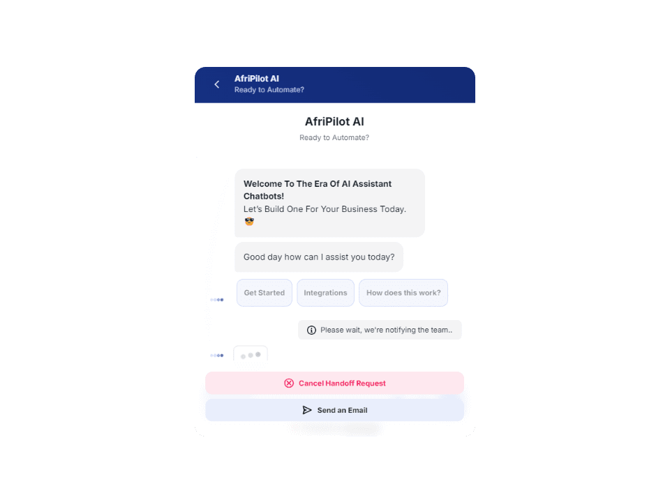In today's world of instant gratification, your customers want immediate answers to their most pressing questions. AfriPilot AI Agents add a dynamic functionality to your site that customers will love.