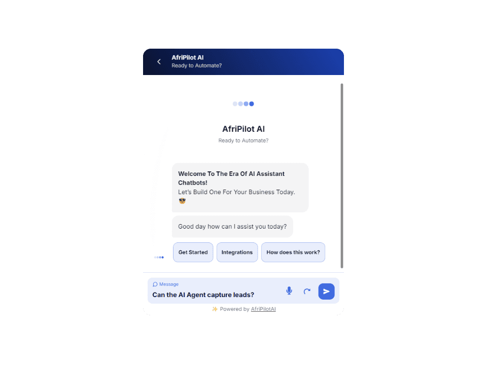AfriPilot Agents help capture, qualify, and route leads automatically, ensuring no potential customer is overlooked.