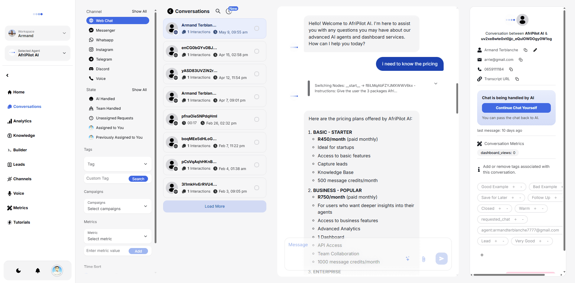 AfriPilot AI integrates all your customer communication in one powerful platform. (AfriPilot AI Dashboard)