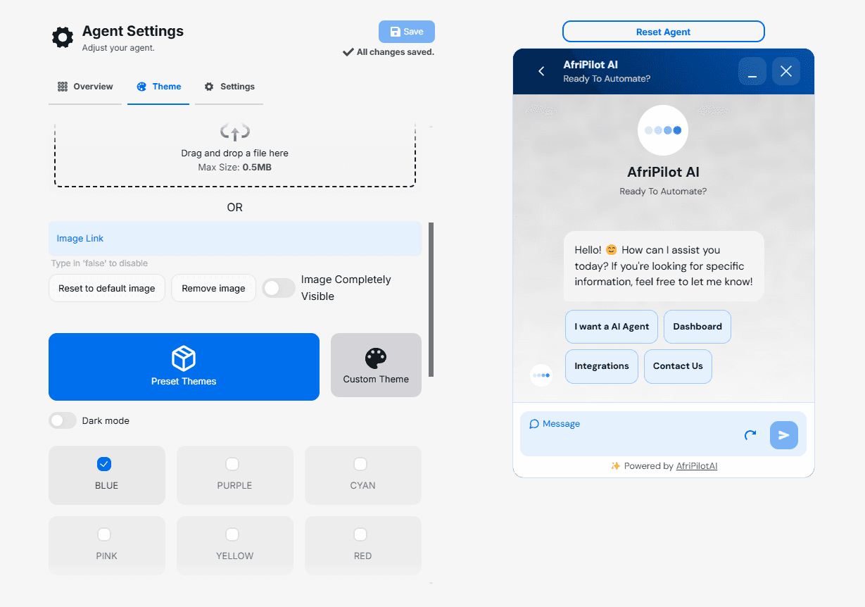 Manage Your Agent: Adjust themes to align with your brand, update the agent overview for a personalized experience, and configure settings like proactive messaging to enhance functionality.